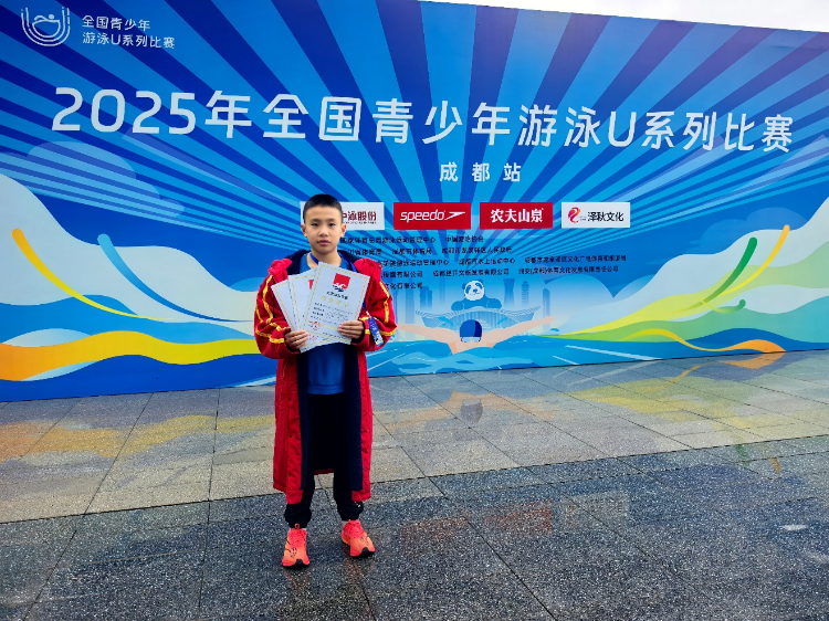 2025年全国青少年游泳U系列比赛(成都站)在东安湖体育公园游泳跳水馆举行,来自全国105支队伍的1000余名青少年运动员齐聚于此,竞争十分激烈。凭借出色的发挥,来自重庆市江北区华新实验小学观音桥校区五年级四班的陈正果取得了优异的成绩。